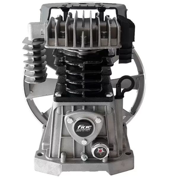 Baia de ulei si chiulasa sunt din aluminiu, cilindrii sunt din fonta cu aripioare de racire. Pistoanele pompei sunt din INOX, si sunt echipate cu 3 segmenti. Ungerea se face cu ulei (pompa se livreaza cu ulei in baie). Placa de supape este din fonta, cu supape din INOX.