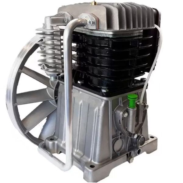 Baia de ulei si chiulasa sunt din aluminiu, cilindrii sunt din fonta cu aripioare de racire. Pistoanele pompei sunt din INOX, si sunt echipate cu 3 segmenti. Ungerea se face cu ulei (pompa se livreaza cu ulei sintetic in baie). Placa de supape este din fonta, cu supape din INOX.